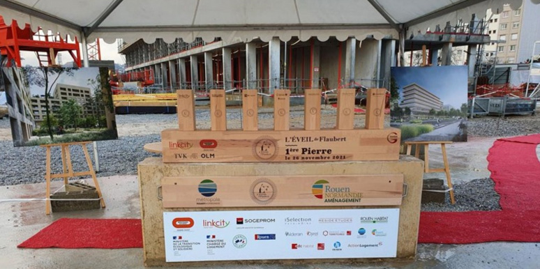 Vendredi 26 novembre 2021 s'est déroulée la pose de la pierre pierre de l'ensemble immobilier l'Eveil de Flaubert en présence d'Emmanuelle WARGON, Ministre chargé du logement
