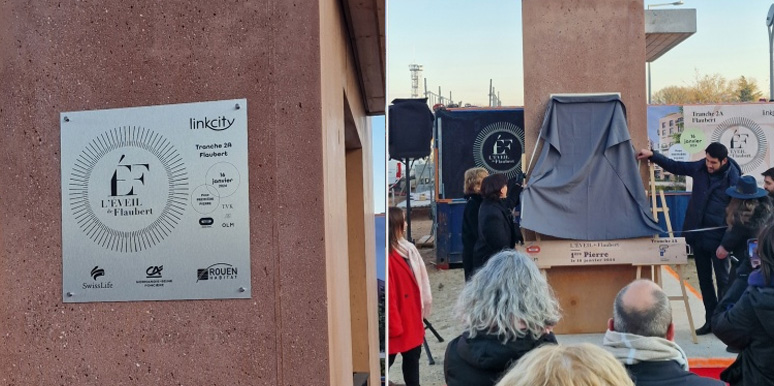 Ce mercredi 17 janvier 2024 a eu lieu la pose de la première pierre de la phase 2 du programme immobilier L'Eveil de Flaubert à Rouen.