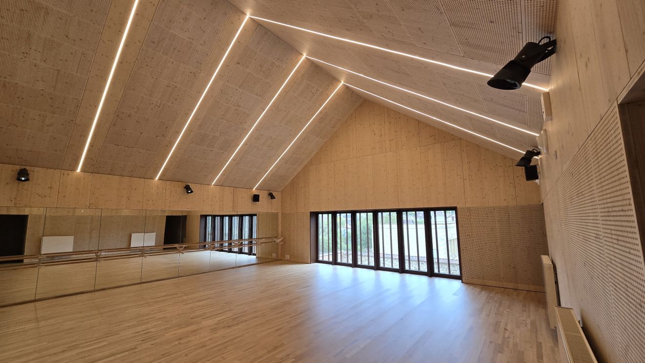 - Activités sportives, de loisirs et culturelles : laboratoire photo, salle de danse, salle polyvalente (210 m²), vestiaires et rangements.