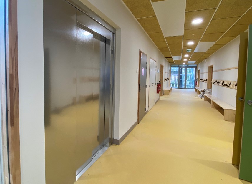 Démarche environnementale : Démarche HQE sans labélisation. Plancher bois et murs à ossature bois avec isolation en laine de bois.