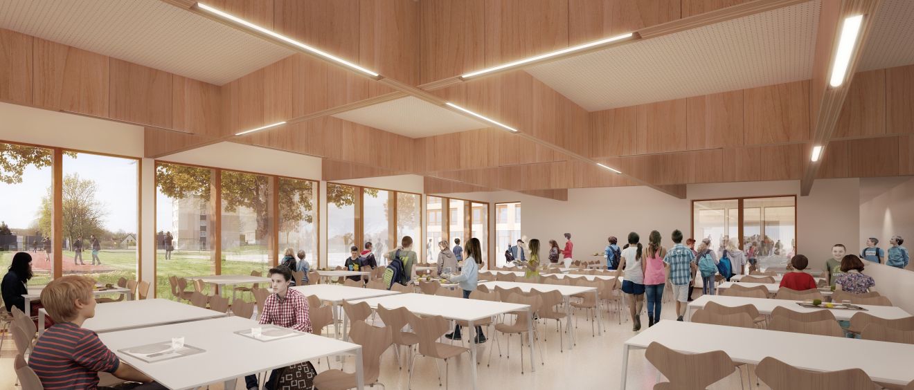 - Pôle restauration : 658 m² (1 salle à manger élève d'une capacité de 162 places et d'une production de 600 repas/jours)
