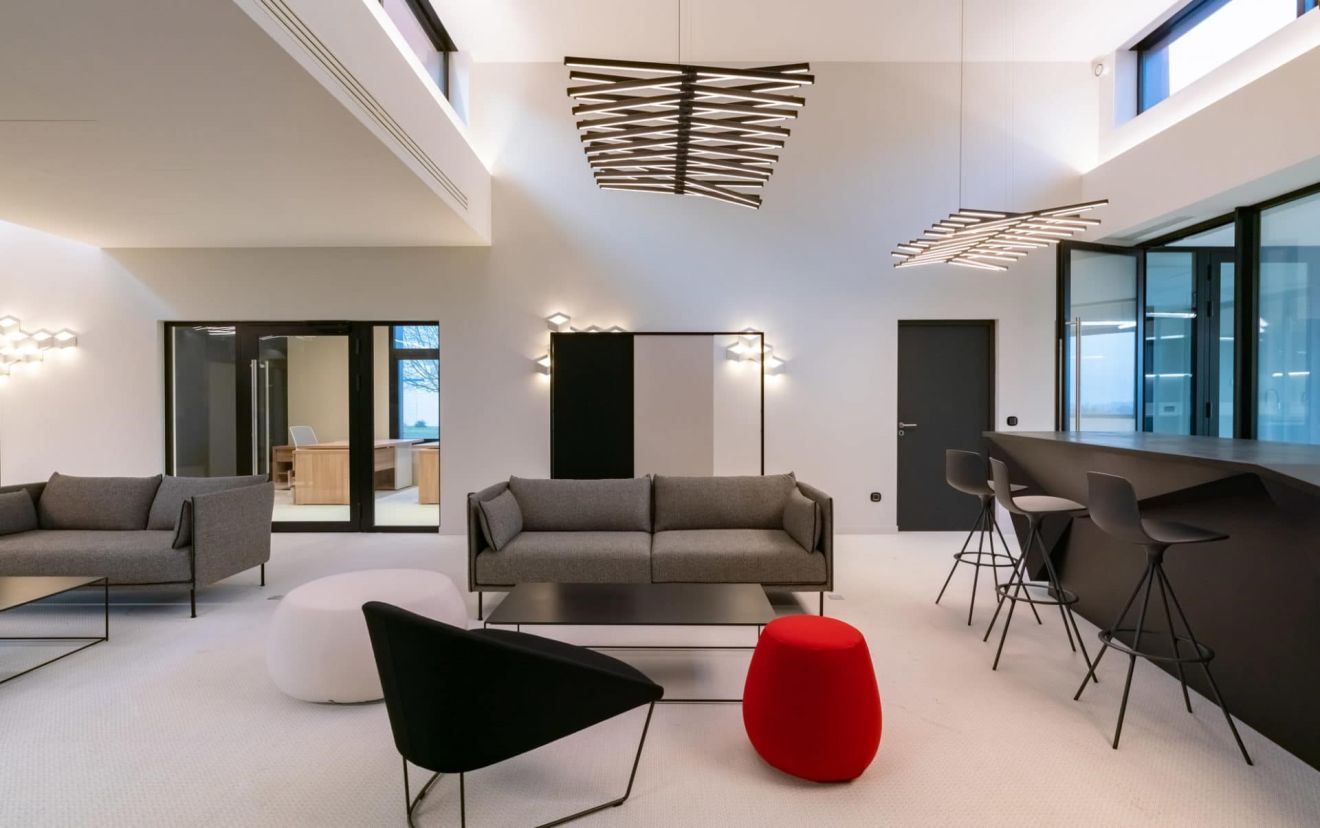- Un espace d'accueil avec salon et bar/lounge pour la réception des clients.
