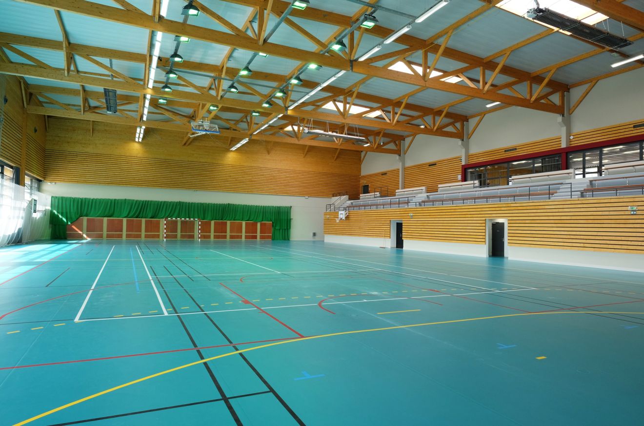 - Une salle omnisports de 44 X 24 m (hauteur 9 m) avec mur d’escalade et stands de tir à l’arc