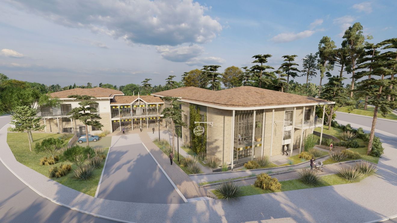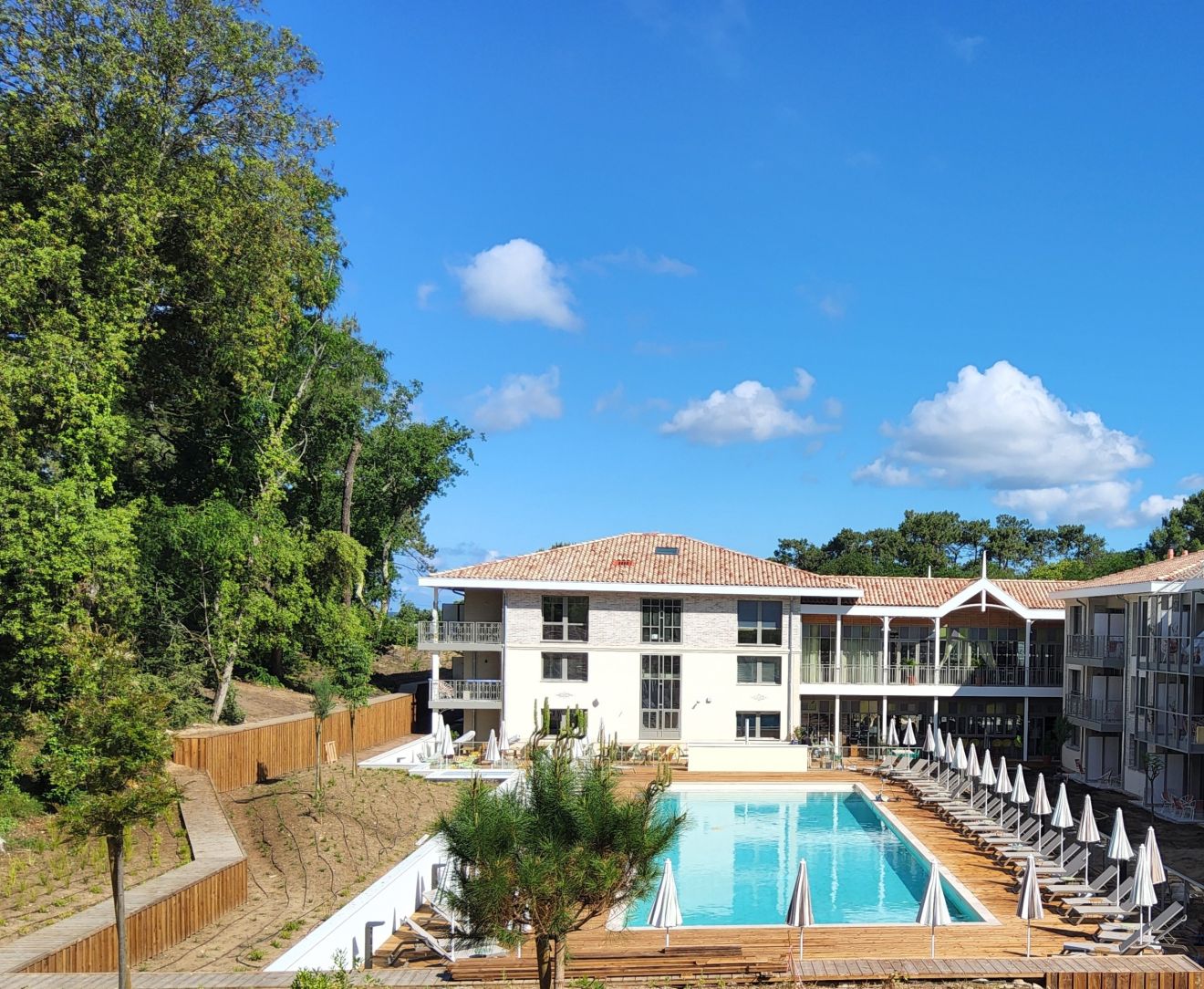 - Rez-de-chaussée : services généraux, back office, hall, cuisine, salle de petit déjeuner, bar, salle de fitness, salle de séminaire, locaux du personnel, 29 chambres, piscine extérieure avec plages et terrasse